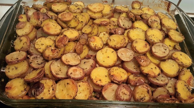 The great thing about Shepherd’s Pie is that it can be made with any meat and gravy. I like to throw in some frozen mixed vegetables as that turns this casserole into a complete meal. The veggies make it a little more like pot-pie, but it still works. This time instead of the mashed potatoes, I used sliced baby potatoes that had been seasoned with some herbs and tossed with olive oil and a little salt. It just made the meal feel a little lighter which isn’t such a bad feeling after the usual turkey feast at Thanksgiving.