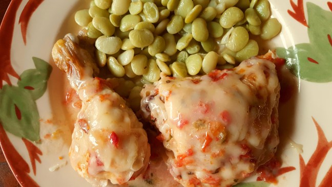 - Chicken pieces, any kind, skin on or skinless (I had about 6 lbs. leg quarters)