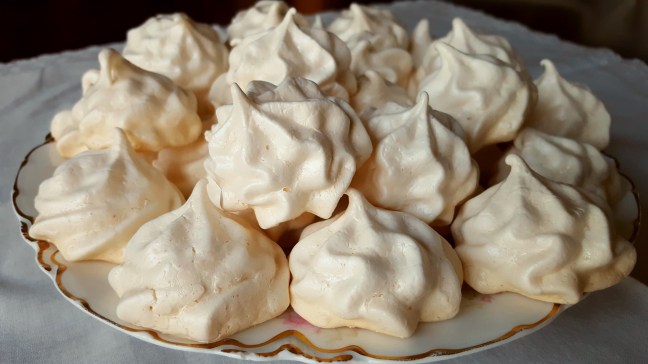 Meringues are a common treat found in the many, many, many sweet shops in Greece, and are a great way to use up extra egg whites you may have from recipes that only wanted egg yolks. They are truly easy to make, but they can be picky. And hey, even if they don’t turn out “perfect” you can always pass it off as something you meant to do anyway. That pickiness thing can result in different textures in the final product, all of which will taste good.