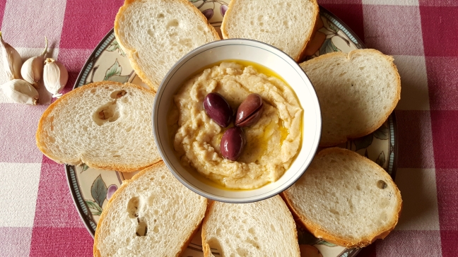 20190326_143553There are three traditional ways in which skordalia can be prepared, either with a base of potatoes, bread, or nuts (usually walnuts).  I’m a much bigger fan of the bread version, so that’s what I have here.  The debate as to which is better is almost as intense as the Twilight series debate of “Team Edward” or “Team Jacob”.  I guess if you’re a garlic fan, you’re “Team Jacob” (or like me, you don’t care!).