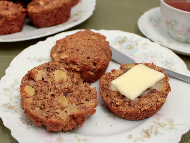These muffins are just that kind of recipe. No, you don’t need to have old apples, but if that’s what you have then no worries. These muffins are moist, lightly sweetened, and made with a healthy dose of wheat bran. Wheat bran actually adds a nice flavor as well as texture to baked goods like these muffins. I completely reject the notion that muffins are supposed to be cupcakes in disguise, while at the same time firmly believing that they should still taste good. And according to my family, who scarfed these down in an unbelievably short time, these taste good.