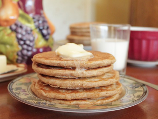 I also like to use whole wheat pastry flour (or 1/2 whole wheat and 1/2 all purpose) for the same reason. That little bit of whole grain turns the pancakes into something with a lot more depth and texture. It lends a little rustic touch and gives you a breakfast that fills you up without feeling like you just ate lead weights. Not really an appetizing thought, is it?