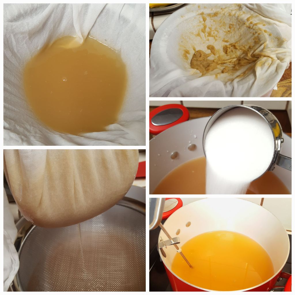 Trust me on the steps taken to strain out the liquid made for the jelly. By doing it in stages to filter out various sizes of materials, you actually speed up your process and get more of the liquid extracted. It saves a lot of frustration in the end!
