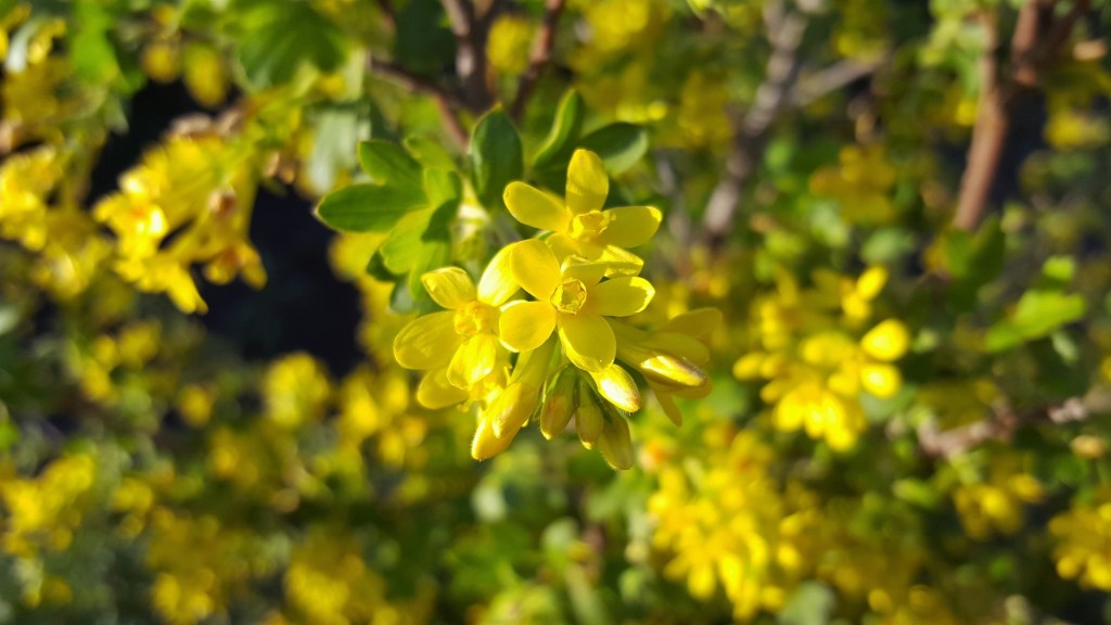 I’m generally not a huge fan of yellow flowers, especially the very bright, lemon-yellow kind. However, the petit blossoms of Golden Current have become a much anticipated exception to this each spring.